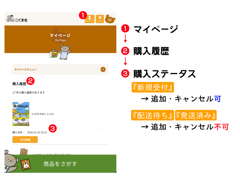 ・注文の追加・キャンセルは、ステータスが「新規受付」の間のみ可能です。